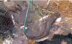 7月1日,中国绿发会志愿者执行禁渔期巡护,在松花江哈尔滨段左岸阳明滩大桥上游300米浅滩处,一张绝户网(地笼网,学名《定置串联倒须笼》)部分露出水面,...