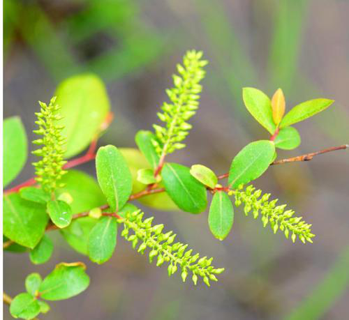 腺柳,春季幼叶呈红色,夏季呈嫣红色,秋后呈绿色;小枝暗紫红色;花序特长,呈黄色、黄红色或紫红色,植株极为美观。故又称彩色柳,具有极高的观赏价值。