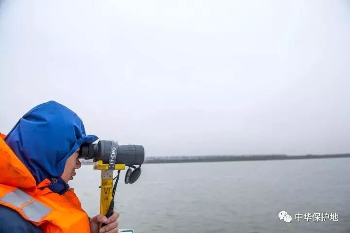 今天从簰洲湾到洪湖,在长江江面航行了7个半小时,航程94公里,1,2号科考船相隔5公里,一条负责南岸,另一艘负责北岸,采取相同的科考方法组合,我想可能是为了双保险吧,因为目视观测的时间很长,每个科考队员都有一个定制的望远镜的架子,观测时转动架子就能扫描江面,这样就避免了长期手持望远镜的疲惫,而整个航程时间内,目视观测不间断,其实在这么宽阔的江面上,长时间坚持都耐心和体能都是一种考验。